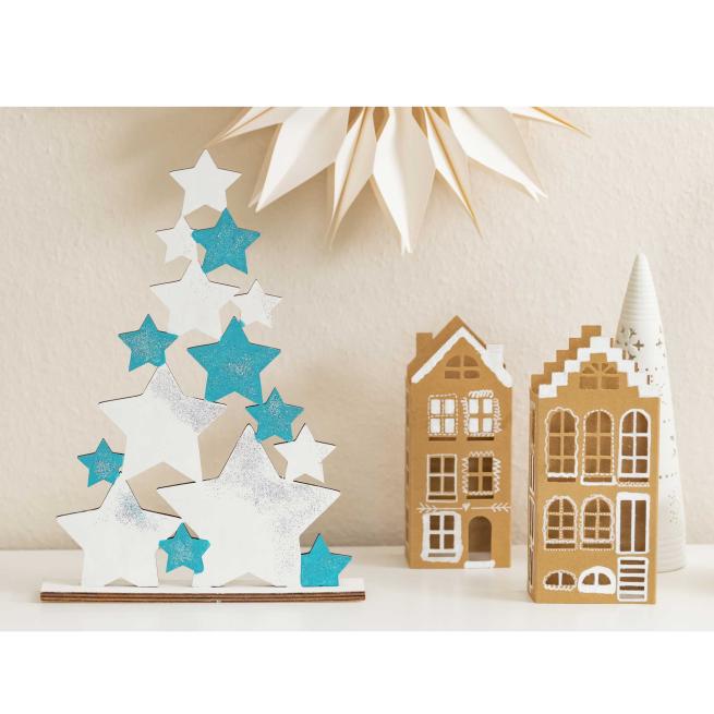 Außergewöhnliche Hingucker-Deko. Der große Stern-Weihnachtsbaum besteht aus hellem Sperrholz. Nutzen Sie z. B. Acrylfarben (bitte separat bestellen), um den Baum prachtvoll zu „schmücken“. Auch naturbelassen ein schönes Deko-Objekt und schönes Weihnachtsgeschenk für Eltern und Großeltern.
