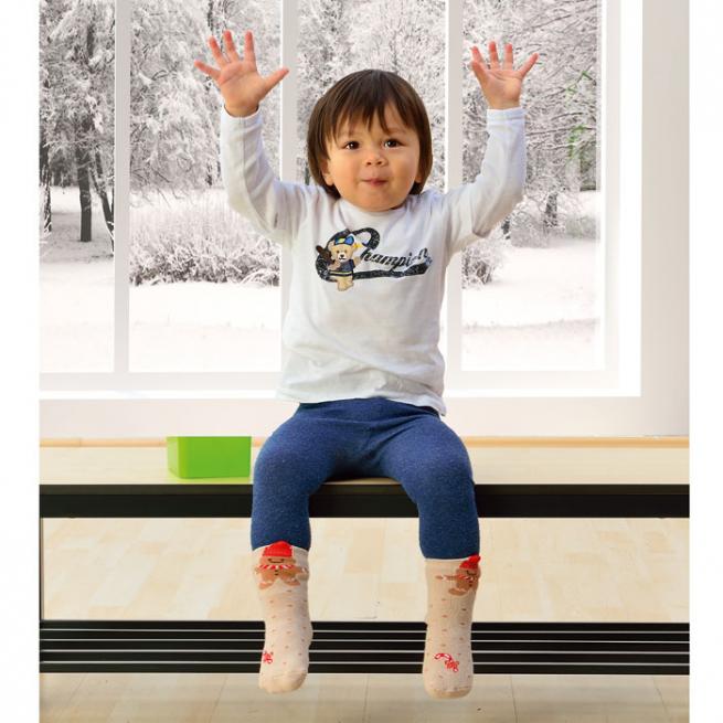 Perfekte Begleiter für den Winter. Die Weihnachtssocken im Schneemann-, Lebkuchenmännchen- oder Eisbär-Dessin mit Anti-Rutschnoppen halten Kinderfüße schön warm, wenn mal die Hausschuhe fehlen. Auch ein drolliges Geschenk für den Adventskalender. Jedes Motiv im 3er-Set je 1x vorhanden.
