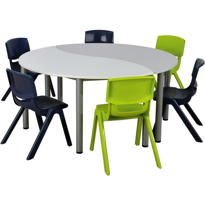 Das Set besteht aus 2 Wellen-Halbrund-Tischen.