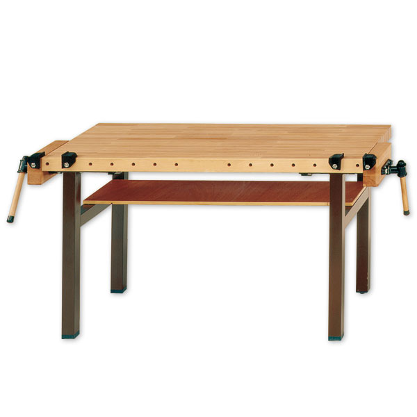 Universaltisch mit robustem Gestell aus 60 x 60 mm Vierkantstahl und widerstandsfähiger Arbeitsplatte aus Buche. Die stabile Konstruktion eignet sich ideal für den schulischen Werkbereich und verfügt über eine praktische Ablage unter der Arbeitsfläche für Werkzeuge. Im Lieferumfang enthalten sind Bankhaken, Steckspannbacken und Zangenschlüssel für ein sicheres Einspannen von Materialien.