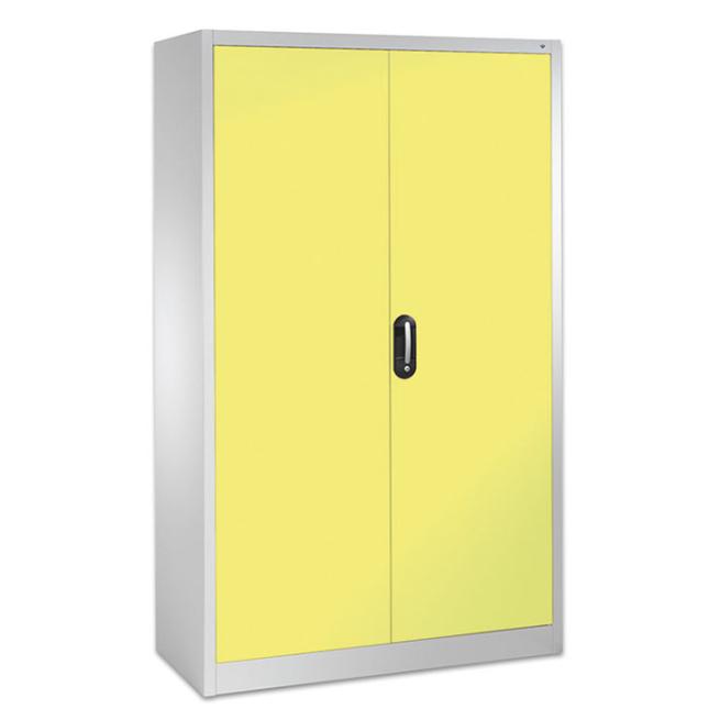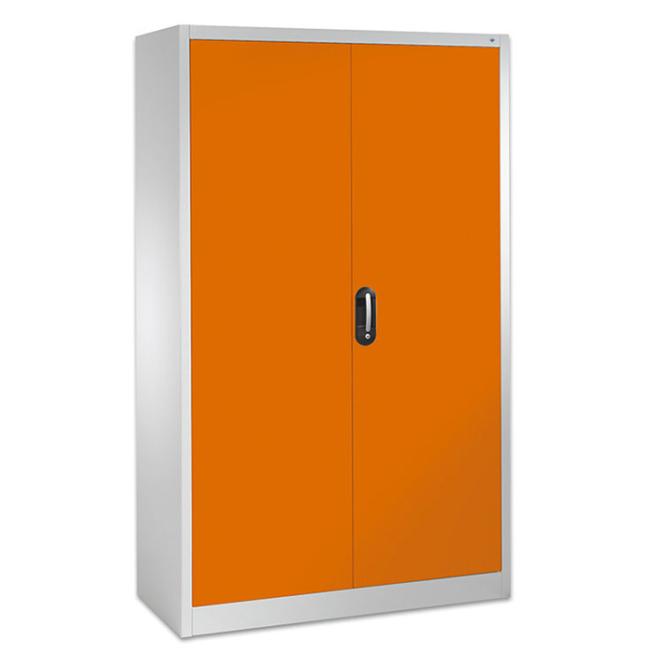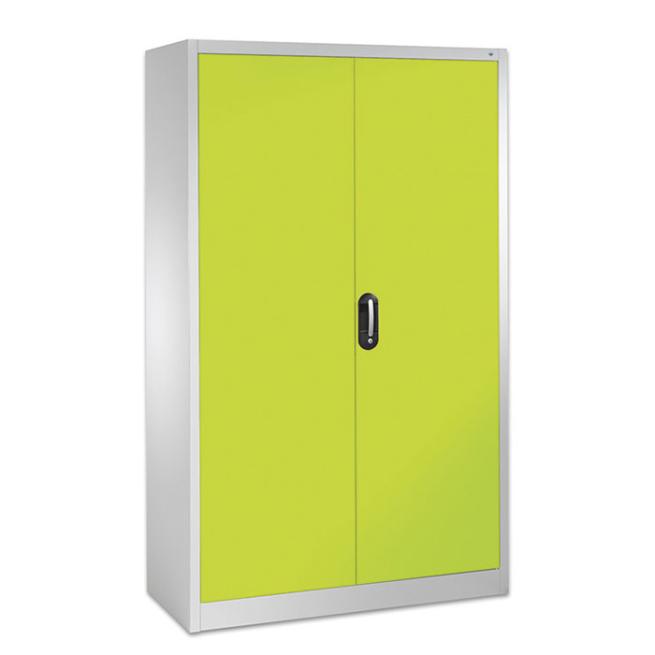Stabiler Stahlschrank mit verzinkten Böden und farbenfrohen Türen. Schwere Werkzeuge und weitere Utensilien verstauen Sie sicher auf den einzelnen Böden, die jeweils 70 kg tragen können. Setzen Sie die Böden ganz nach Ihrem Bedarf ein, denn sie sind höhenverstellbar. Schutz vor ungewolltem Zugriff bietet der abschließbare 3-Riegel-Verschluss. Die mittige Verstärkung in der Tür sorgt für zusätzliche Stabilität und der 110° Öffnungswinkel für bequemes Entnehmen der Materialien. Erhältlich in den Breiten 93 und 120 cm und Tiefen von 40 bis 60 cm.
