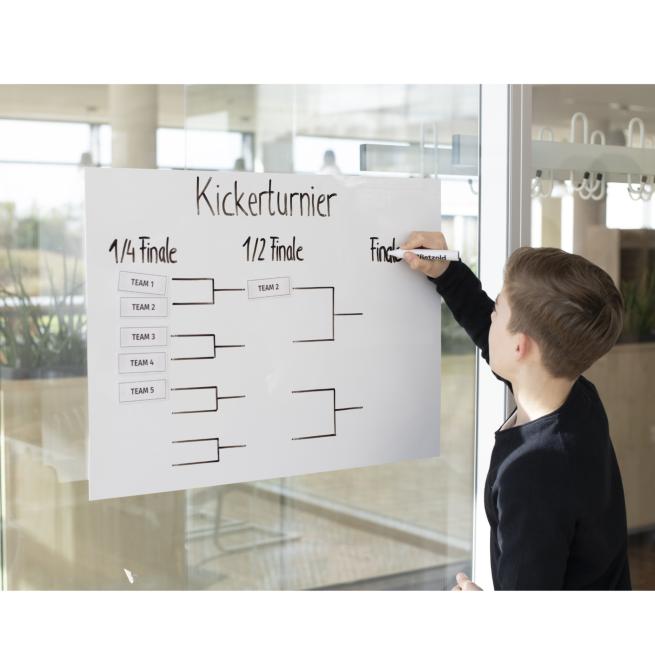 Schnell angebracht und superpraktisch – dieses Whiteboard ist sofort und überall einsetzbar. Dank der selbstklebenden Rückseite haftet die Whiteboardfolie auf jedem ebenen Untergrund. Nutzen Sie die Folie einfach wie ein ganz normales Whiteboard. Die Oberfläche lässt sich mit Whiteboard-Stiften beschreiben und trocken wieder abwischen. Mit der Whiteboardfolie schaffen Sie eine Magnettafel, wo es Ihnen gefällt. Ob als Übungstafel im Klassenraum, für Infos im Büro und in der Küche oder als Spieltafel für Ihre Kinder – auf der Whiteboardfolie haften Ihre Magnete perfekt.