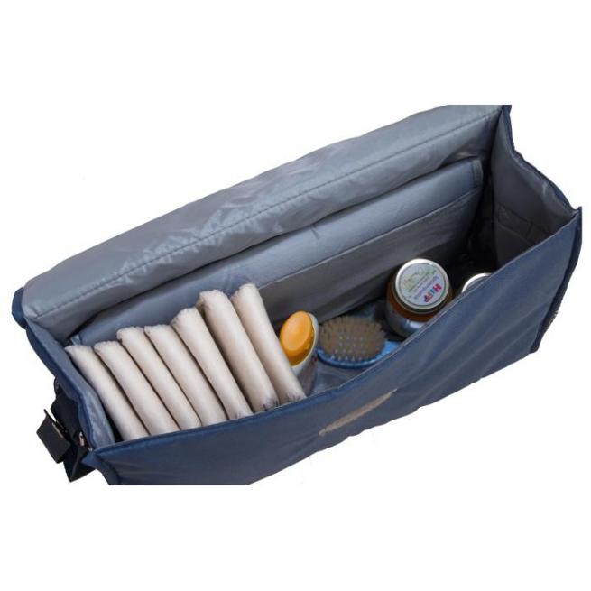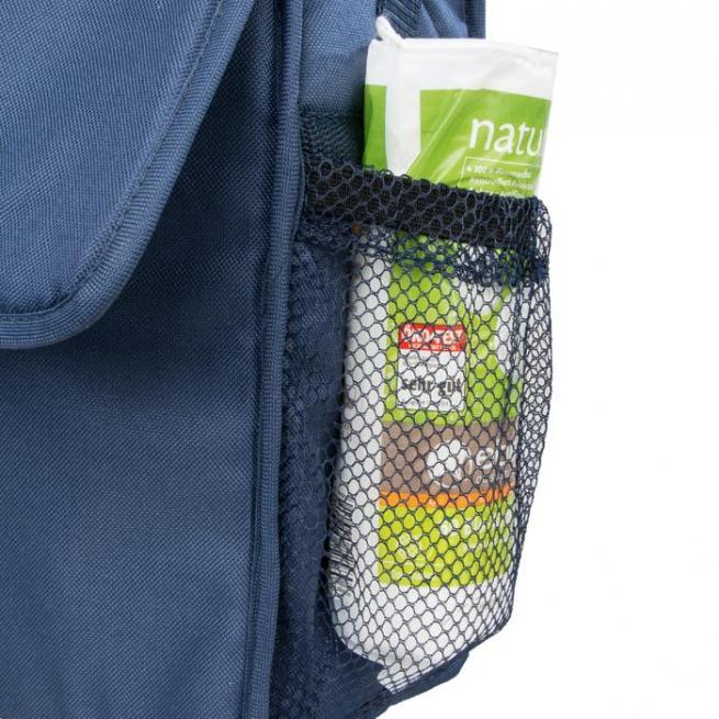 Schafft Ordnung und ist auch besonders „papatauglich“ – die praktische blaue Tasche bietet Platz für sämtliche Utensilien, die Sie unterwegs für Ihr Kind brauchen. Mit 1 großen Innenfach, 2 innenliegenden Seitenfächern, davon 1 mit Klettverschluss und seitliche Getränkehaltertaschen. Außenseiten mit 2 Fixiergurten zur schnellen Befestigung am Kinderwagen.