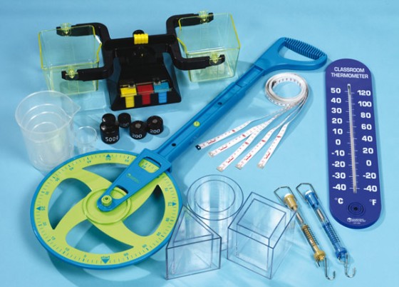 25 Teile: Federwaage (1 kg), Federwaage (250 g), Bandmaß (5x 150 cm), Bandmaß (10 m), Messbecher, Liter-Set, Rolltacho, Wandthermometer, Balkenwaage, Zusatzgewichte, Aufbewahrungsbox