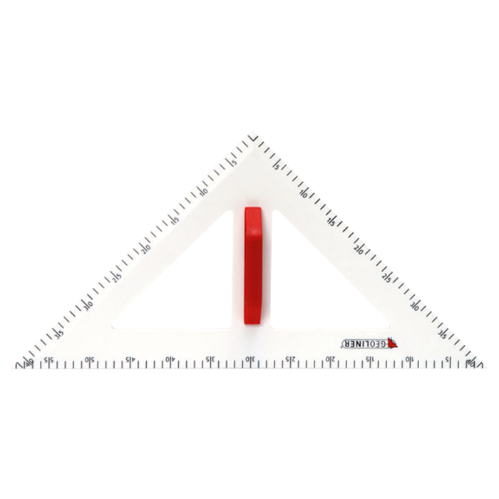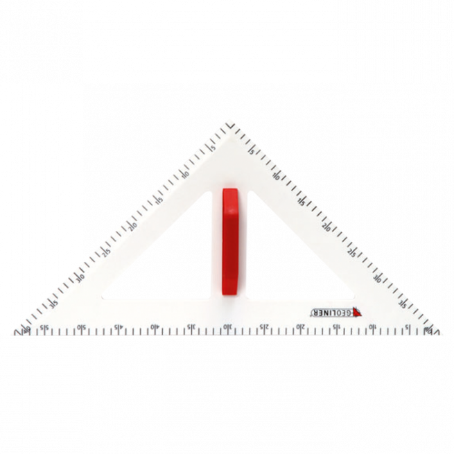 Der gleichschenklige Winkel hält dank des robusten Kunststoffs einiges aus und mit dem stabilen Handgriff lässt er sich sicher auf der Tafel bewegen.