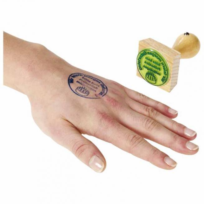 Mit abwischbarer Stempelfarbe wird auf jedem Handrücken die Info gut lesbar.