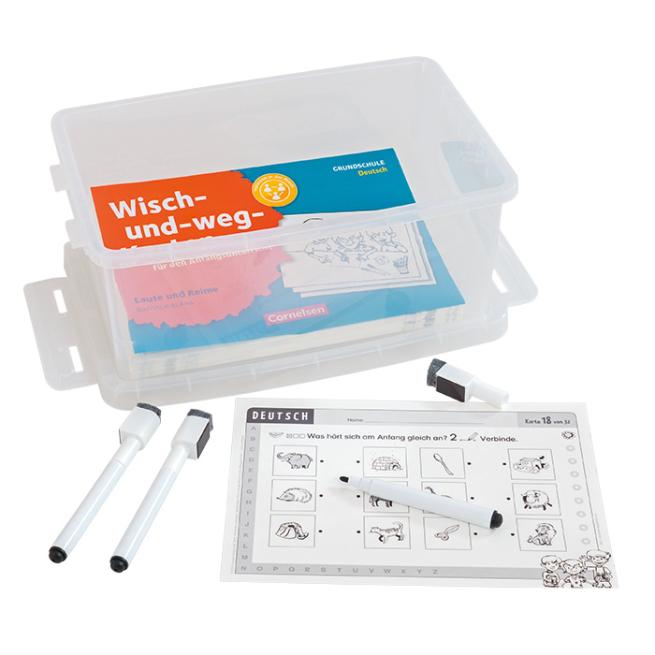 Nur die Karten oder als Set - Bei diesen Karten ist der Name Programm. Mit einem Folienstift sind die Karten beschreib-, abwisch- und wiederverwendbar. Die Schüler erkennen spielerisch Laute, ordnen sie den passenden Graphemen am Wortanfang zu, üben den ersten Umgang mit der Lauttabelle, finden, bilden, malen Reime, ordnen Reimbilder zu und erkennen Fehlreime. Inklusive Begleitheft mit didaktischen Hinweisen.