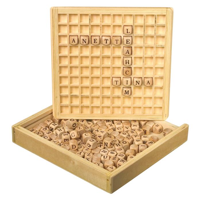Einlegebrett mit 100 Kästchen, passend für die Buchstabenwürfel. Vielseitig einzusetzen z.B. als Kreuzwort-Spiel oder als Lesekasten.