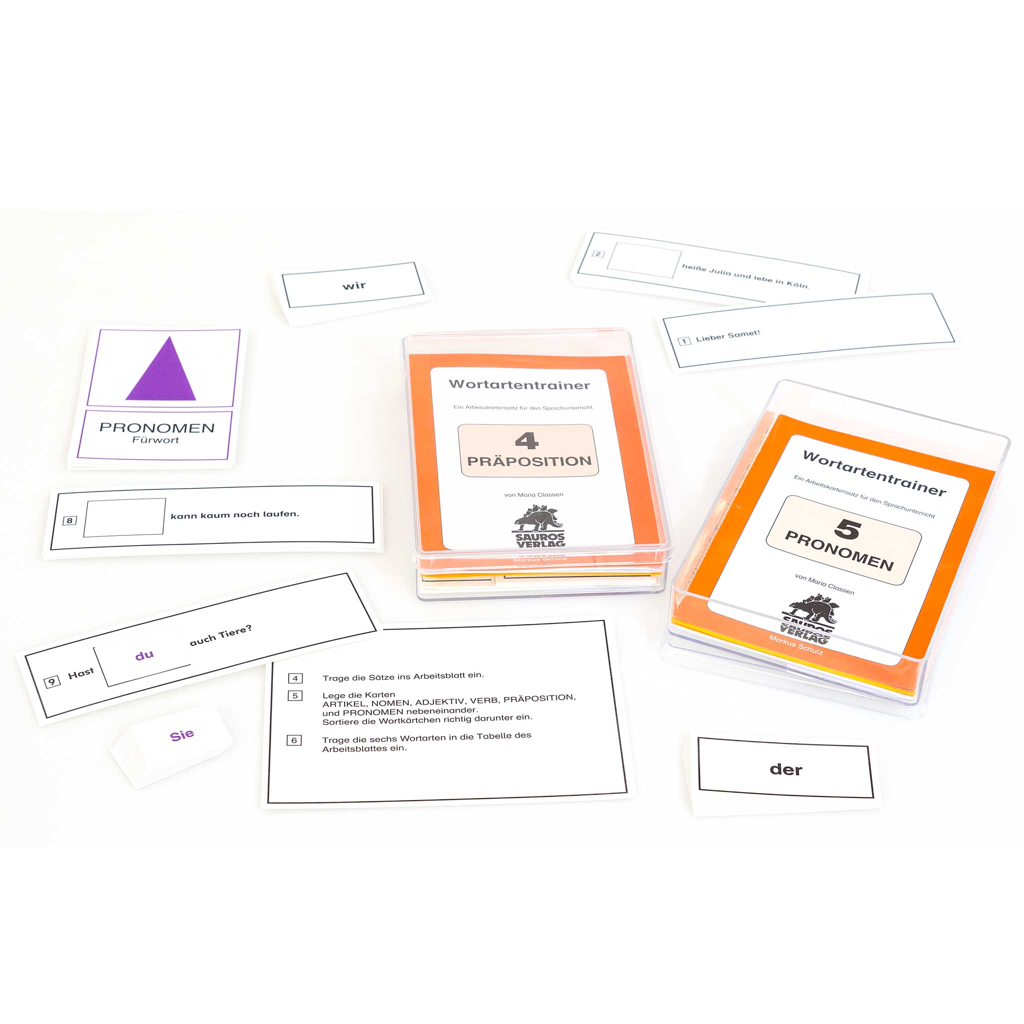 Die Wortartentrainer 4 und 5 bauen auf den vorangegangenen Trainern auf. Jede Dose enthält Kopiervorlagen.
