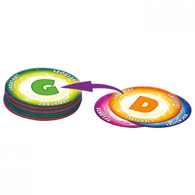 Wer findet blitzschnell ein passendes Wort zum vorgegebenen Buchstaben und der bestimmten Kategorie auf jeder einzelnen Spielkarte? Wer die richtigen Wörter nennt, darf die Karte behalten. Gewinner ist derjenige mit den meisten Karten. Für 2 – 6 Spieler. Ab 6 Jahren.