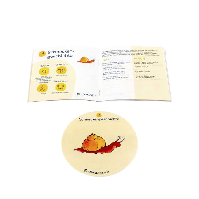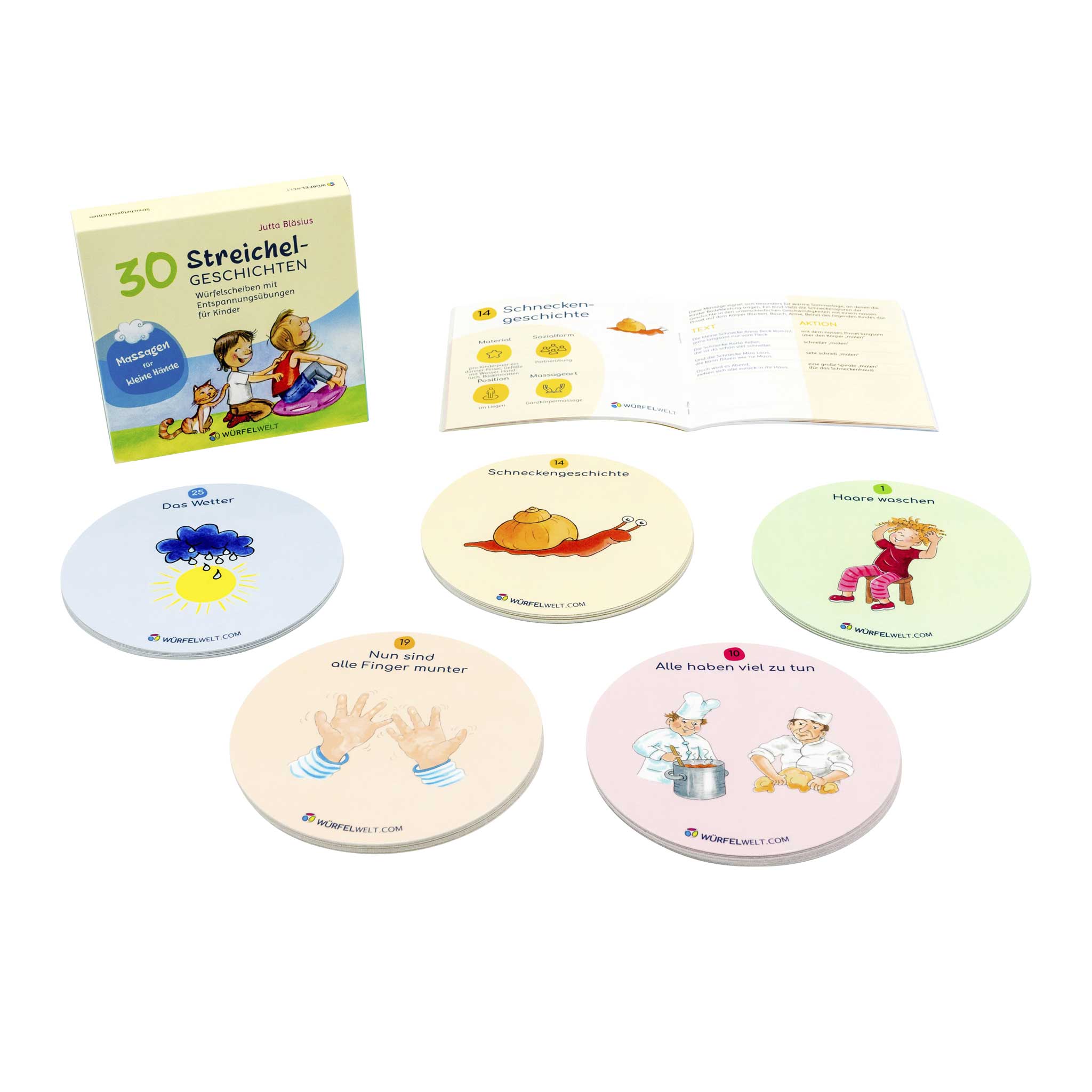 Mit diesen Einlegescheiben für den Würfelwelt-Würfel bringen Sie auf spielerische Weise Entspannung in Ihre Einrichtung. Herrlich wohltuend sind die unterschiedlichen Massagegriffe, die sich aus den gereimten Streichelgeschichten auf den 30 Einlegescheiben ergeben.