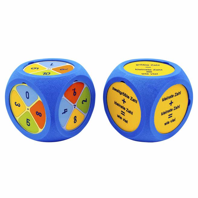 Spaßiges Rechentraining: Mit den unterschiedlichen Einlegescheiben gestalten Sie den Würfel immer wieder neu. Einfach in die 6 Seitenflächen einfügen und schon werden aus den üblichen Würfelaugen z. B. Additions- bzw. Subtraktionsaufgaben, Rechenimpulse oder 1 x 1-Übungen. Auch die eigene Gestaltung ist möglich.