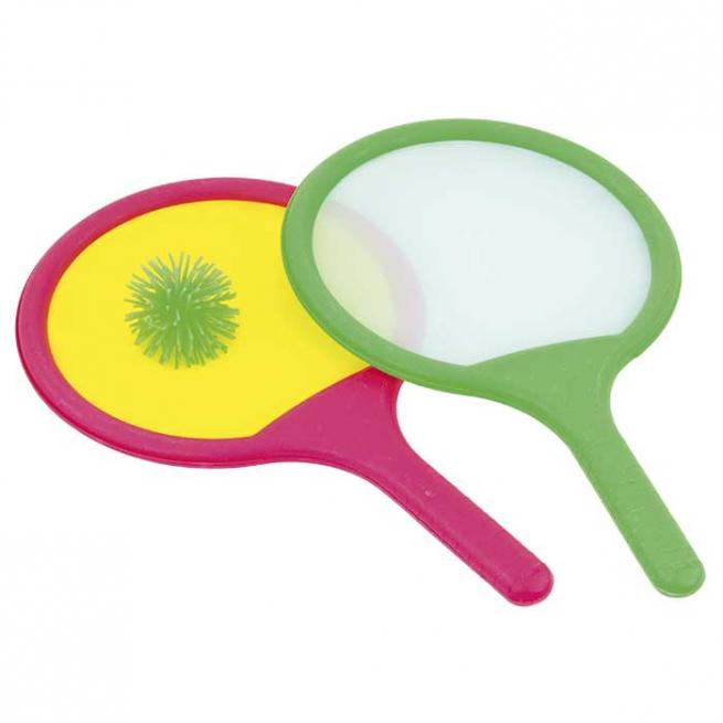 Ob als lustiger Zeitvertreib in der Pause oder als Mannschaftsturnier – das Spiel mit dem Wuselball macht allen Spaß! Die Kunststoffschläger sind an allen Kanten weich abgerundet. Die Bespannung aus elastischem Stoff (100% Elastan) sorgt für einen Trampolin-Effekt, der das Spiel leicht und schnell macht. Ideal für jüngere Kinder.