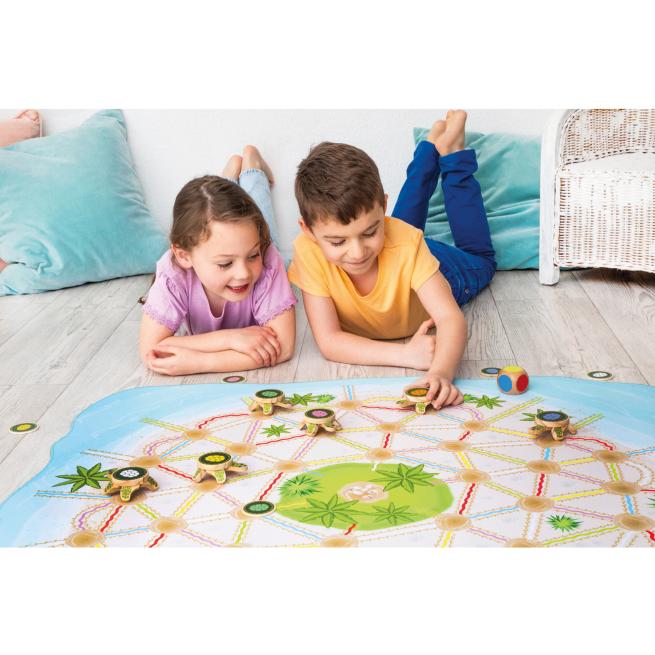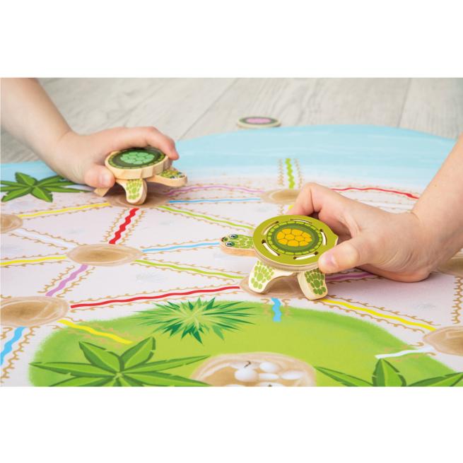Dank leichter Regeln und großer Spielfiguren ist das Spiel schon für kleine Kinder ideal. Nebenbei wird die Farberkennung geschult und noch Wissenswertes über das Leben von Schildkröten erfahren.