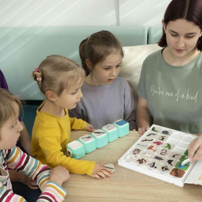 Beim Spielen treten die Kinder nicht nur untereinander, sondern auch mit dem Spielbrett in direkte Interaktion: Die sofortigen, von den Spielentscheidungen der Kinder abhängigen Reaktionen des Bretts – Vibrationen, Geräusche und der Abwurf falsch ausgelegter Kärtchen – wirken kinästhetisch und vermitteln taktile, auditive und visuelle Reize. Sie geben den Kindern eine ansprechende und einprägsame Rückmeldung, ob sie Kartenmotive korrekt platziert haben.Einfache Reinigung