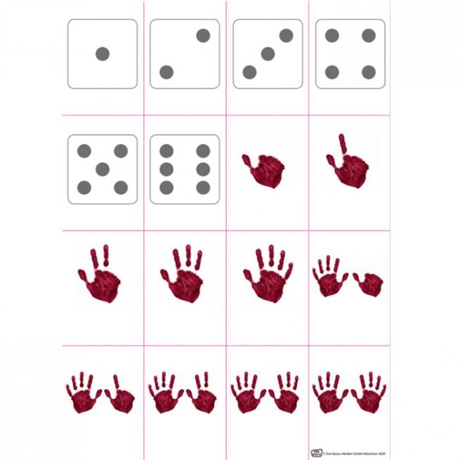 Ziffern von 1 bis 10, Mengenbilder und Zahlenkarten sind auf 350 g-Karton gedruckt. Enthalten ist zudem ein Anleitungsheft mit 10 Spielvarianten in unterschiedlichen Schwierigkeitsgraden.