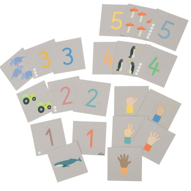 5 Fliesen mit Ziffern (1, 2, 3, 4, 5)5 Fliesen mit Ziffern und Punkten
