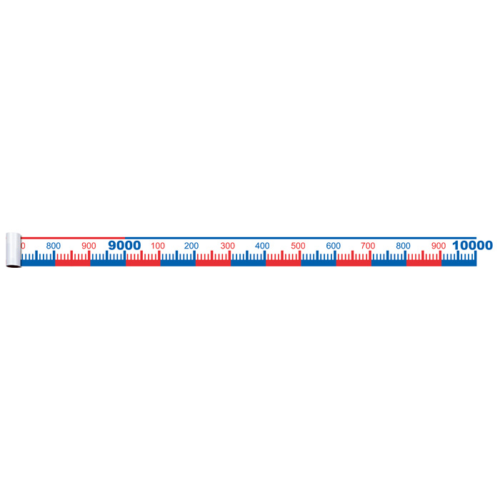 Die Rechenbänder werden an einem Stück gedruckt und bestehen aus stabiler Kunststofffolie. Haken und Stahlnägel zum Befestigen an der Wand sowie Markierungsklammern in Rot und Blau sind inklusive.