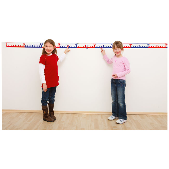 Die Rechenbänder werden an einem Stück gedruckt und bestehen aus stabiler Kunststofffolie. Haken und Stahlnägel zum Befestigen an der Wand sowie Markierungsklammern in Rot und Blau sind inklusive.