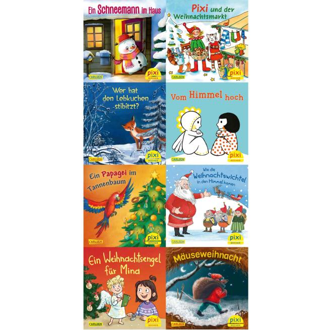 Die acht Pixi-Bücher mit unterschiedlichen weihnachtlichen Geschichten sind das perfekte kleine Geschenk für den Adventskalender. Jedes Büchlein hat 24 Seiten.