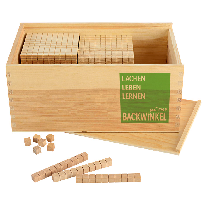 Die Kinder lernen den 100er-Zahlenraum auf anschauliche Art und Weise kennen, indem sie Einerwürfel zu Zehnerstangen und diese zu Hunderterplatten zusammenfassen. Die Addition und Subtraktion mit ein- und zweistelligen Zahlen sowie mit ganzen Zehnern liegt mit diesem Material im wahrsten Sinne des Wortes auf der Hand.