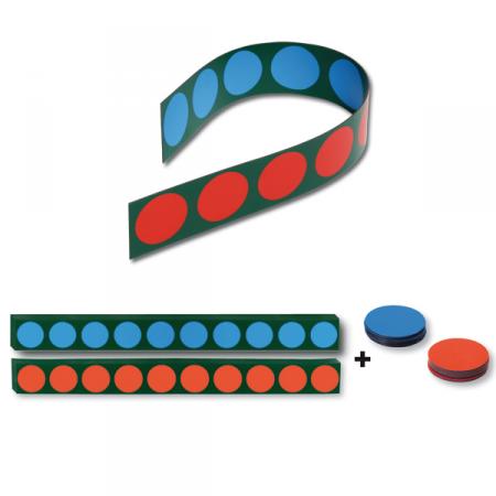 10x Zehner-Wendestreifen, L x B: 60 x 6 cm und 20 magnetische rot-blaue Wendeplättchen, Ø 5 cm