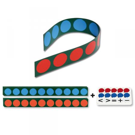 10x Zehner-Wendestreifen, L x B: 60 x 6 cm und 1 Sortierkasten mit 100 rot-blauen Wendeplättchen, Ø 5 cm und 20 Rechenzeichen