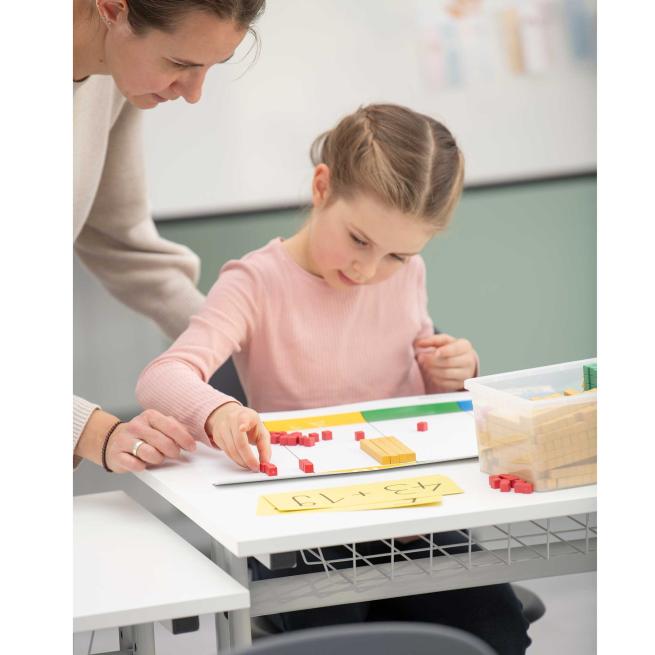 Umfangreiches Set von 300 Einer-Würfeln, 120 Zehner-Stangen sowie 12 Hunderter-Platten aus dem innovativen und langlebigem Biokunststoff treeNside, hergestellt in Deutschland. Der Zehnersystem-Satz hilft Ihren SuS dabei, intuitiv und ansprechend den Zahlenraum bis 100 zu durchdringen. Ihre Schüler erschließen sich haptisch mathematische Grundrechenarten, wie Addition und Subtraktion. Durch das Auslegen unterschiedlicher Zahlenwerte z. B. mithilfe der Einer- und Zehner-Steine erfassen die Kinder im Handumdrehen Zehnerübergänge sowie Mengen und deren Zerlegung. So nehmen Ihre Schüler Mathematik im wahrsten Sinne des Wortes in die eigenen Hände. Apropos: Alle Teile lassen sich schnell in der mitgelieferten und stapelbaren Aufbewahrungs-Box verstauen und bleiben so stets sortiert und staubfrei.