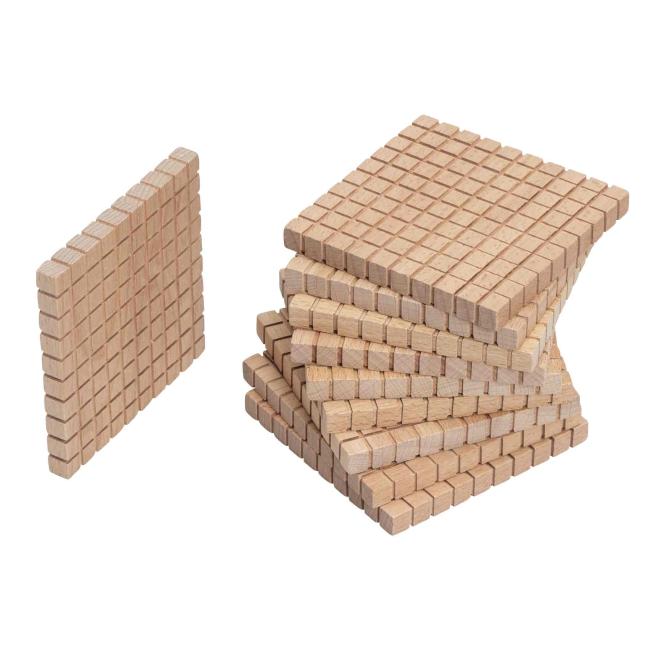 Mithilfe der robusten Zehnersystem-Teile aus massivem Buchenholz bieten Sie Ihren Schülerinnen und Schülern haptisch sehr angenehme Rechenhelfer. Die Kinder verstehen anhand der Zehnerstangen, Hunderterplatten, Einerwürfel und dem Tausenderblock schnell die Beziehungen zwischen Einern, Zehnern, Hundertern und Tausendern und stellen Zahlenwerte dar. Altersempfehlung: 6 – 10 Jahre