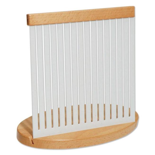 Wenn die Kinder vorgegebene Muster nachlegen oder selbst entwerfen, müssen sie schon genau nachdenken. Die farbigen Steckröllchen lassen sich einfach in vertikalen Reihen in die Ständer einschieben. Für Kinder ab 3 Jahren.