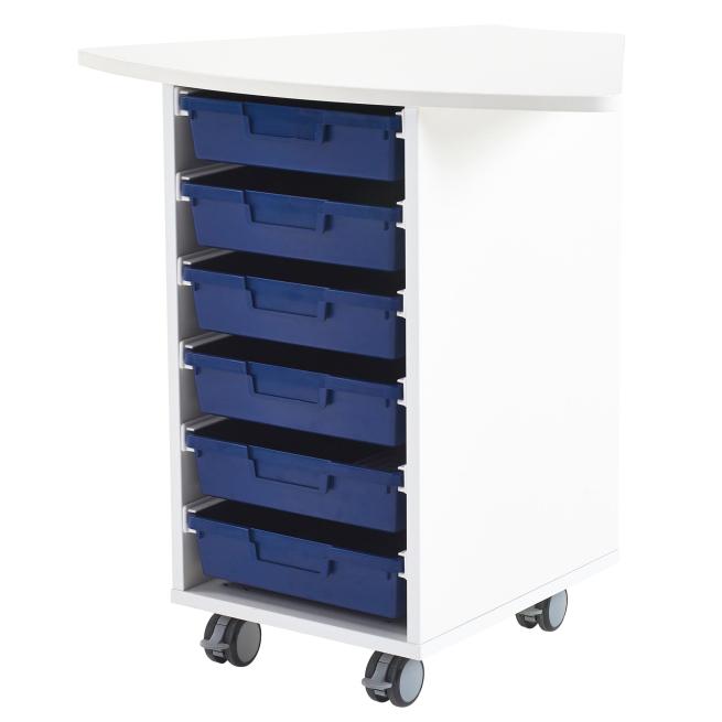 Der 60°-Rollcontainer mit feststellbaren Rollen bietet eine praktische Ergänzung für Gruppensituationen, in denen Kinder auf Material zurückgreifen müssen. Dieses verstauen sie einfach im Rollcontainer.