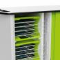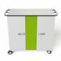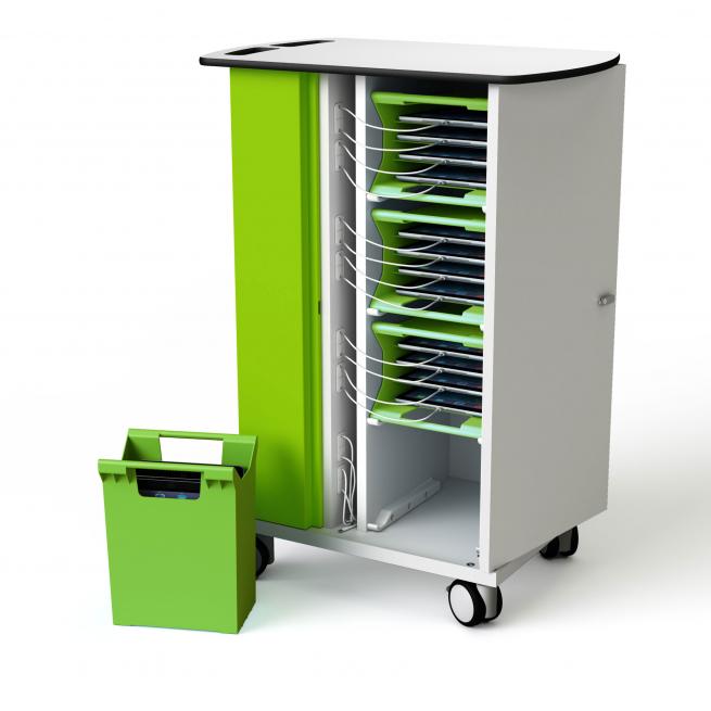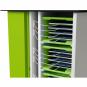 Dank durchdachtem Kabelmanagementsystem vermeiden Sie Kabelsalat und nutzen immer nur ein angemessen kurzes Stück Ihres Hersteller-Ladekabels für ihre iPads. Für den leichten Zugang lassen sich die Türen des Ladewagens um 270° zurückklappen. Die elektrische Schachtabdeckung ist modellgebunden farbig abgesetzt. Mit vier leichtgängigen, feststellbaren Rollen, Grifflöchern und Belüftung. Wahlweise mit Schlüssel-, Code- oder Kartenschloss. Das Kartenschloss nutzt die RFID-Technologie (Radio-Frequenz Identifikation).