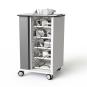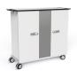 Dank durchdachtem Kabelmanagementsystem vermeiden Sie Kabelsalat und nutzen immer nur ein angemessen kurzes Stück Ihres Hersteller-Ladekabels für das jeweilige Endgerät. Für den leichten Zugang lassen sich die Türen des Ladewagens um 270° zurückklappen. Die elektrische Schachtabdeckung ist modellgebunden farbig abgesetzt. Mit vier leichtgängigen, feststellbaren Rollen, Grifflöchern und Belüftung. Wahlweise mit Schlüssel-, Code- oder Kartenschloss. Das Kartenschloss nutzt die RFID-Technologie (Radio-Frequenz Identifikation).