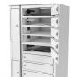 Das integrierte Stromversorgungssystem befindet sich in einem separaten Elektrofach. Dieses ist mit abschließbaren Frontklappen ausgestattet, sodass auch bei mehreren, nebeneinander installierten Spinds der Zugriff jederzeit und nur durch Befugte möglich ist.