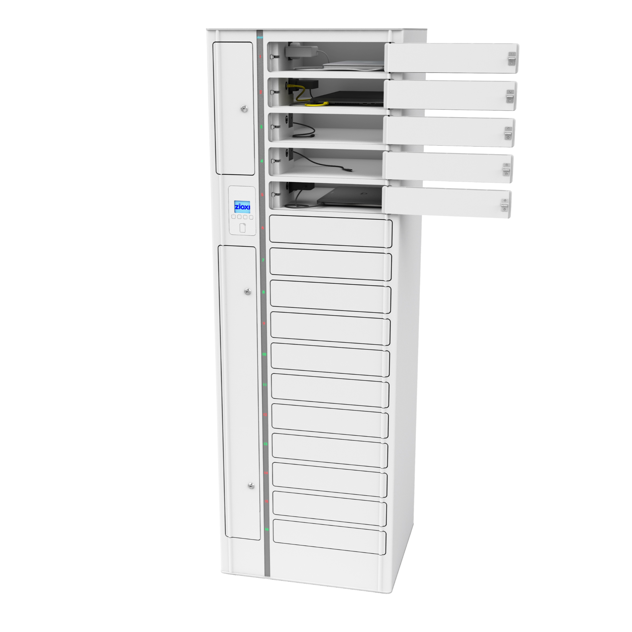 zioxi Volt – onView Laptop-Spind, 16 Geräte Steckdosenanschluss und Multikabel, MiFare-RFID