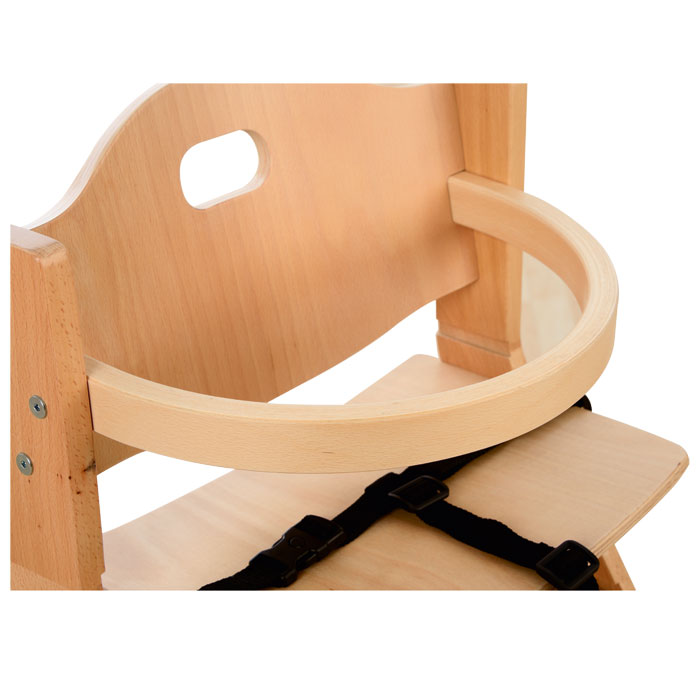 Passender Brustbügel in Buche natur zum ausgezeichneten Kinderhochstuhl tiSsi®. Den halbrunden Brustbügel fügen Sie einfach in die Aussparungen der Rückenlehne ein und befestigen ihn mit den Schrauben. Nun hat das Kind beim Sitzen zusätzlichen Halt. Platzieren Sie den Stuhl frei im Raum oder am Tisch.