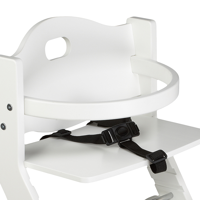 Passender Brustbügel in Buche weiß zum ausgezeichneten Kinderhochstuhl tiSsi®. Den halbrunden Brustbügel fügen Sie einfach in die Aussparungen der Rückenlehne ein und befestigen ihn mit den Schrauben. Nun hat das Kind beim Sitzen zusätzlichen Halt. Platzieren Sie den Stuhl frei im Raum oder am Tisch.