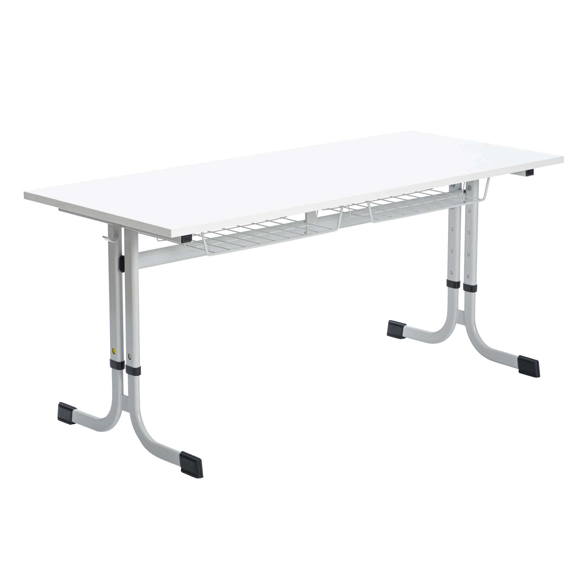 Zweier-Schülertisch mit C-Fuß, höhenverstellbar, mit Drahtkorbablage