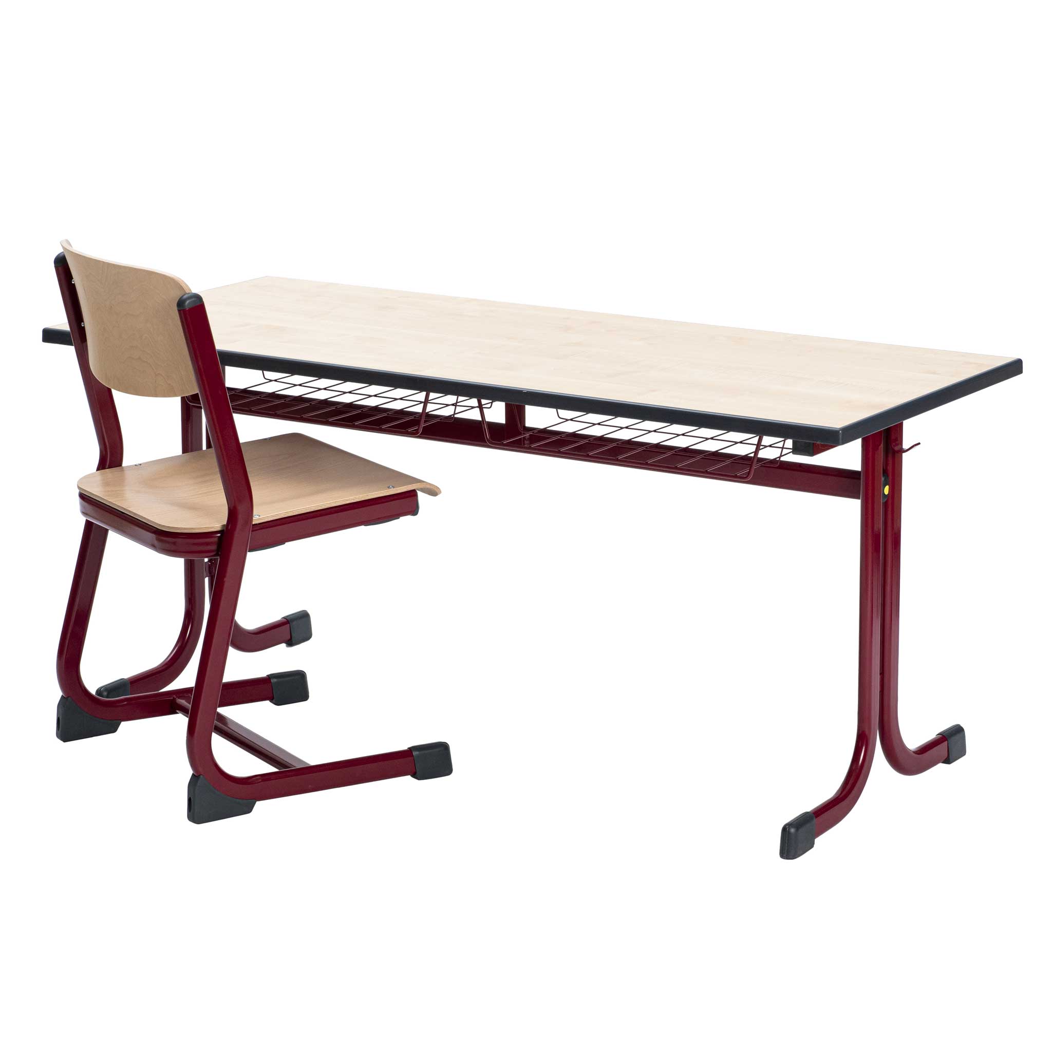 Zweier-Schülertisch mit Doppel-C-Profil, mit Drahtkorbablage