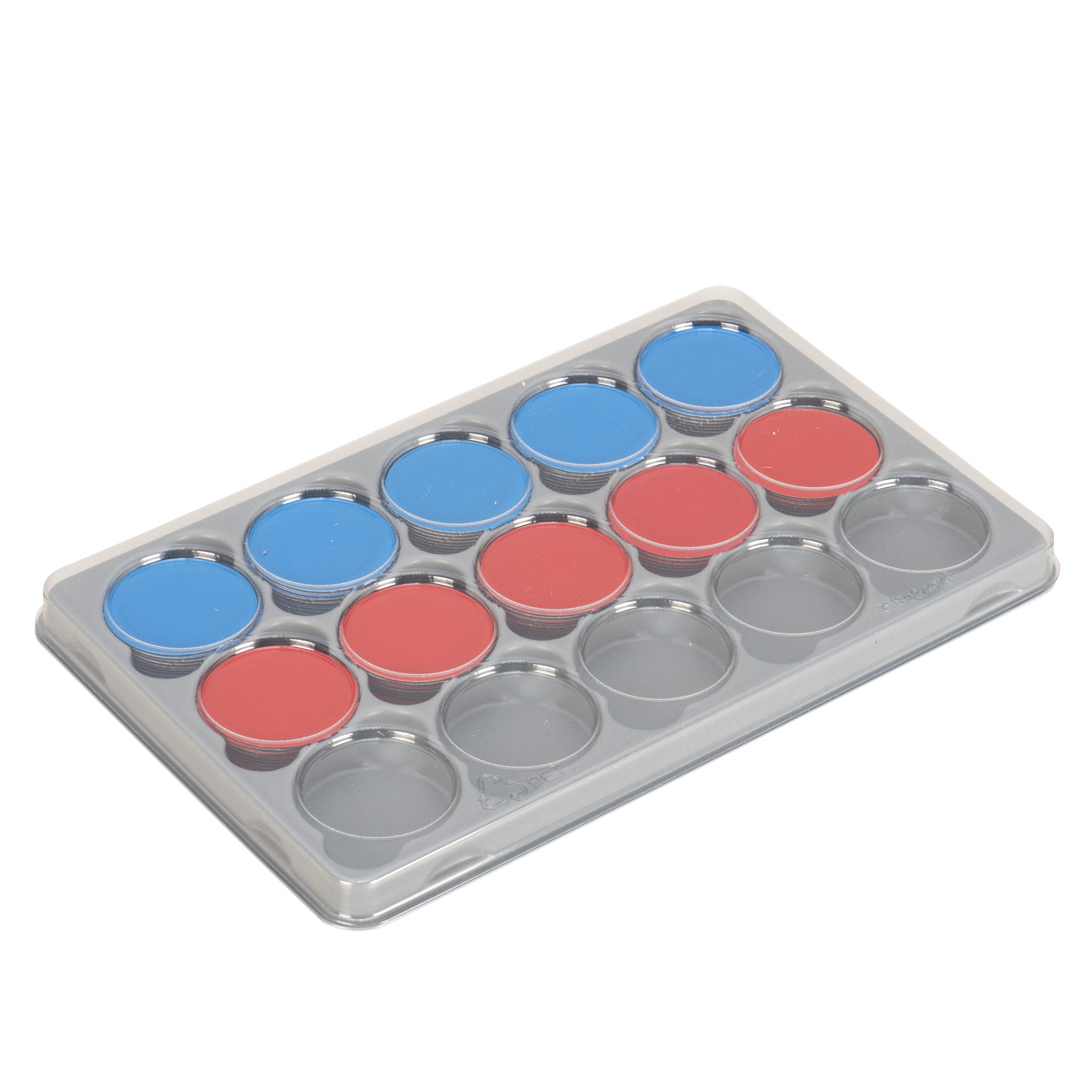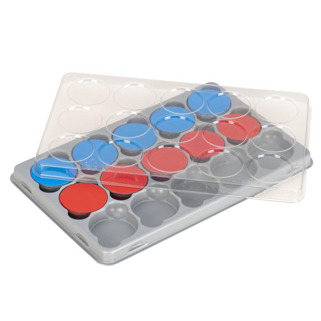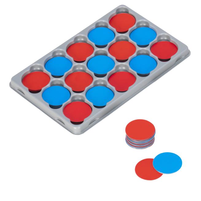 Die zweifarbigen, doppelseitig magnethaftenden Wendeplättchen helfen insbesondere im Zahlenraum bis 20 beim Subtrahieren, Zerlegen, Ergänzen, Verdoppeln und Halbieren. Sie erhalten 100 Wendeplättchen - Ø 5 cm rot/blau ohne Rechenzeichen - im praktischen Sortierkasten.