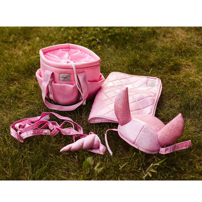 Elegantes Zubehör für die Hobby Horse Steckenpferde. Die Decke schützt die Pferde vor Reibung, der Ohrenaufsatz vor lästigen Fliegen. Die Decke befestigen die Kinder dank Gummizug im Nu am Holzstab. Auch ohne Sattel verwendbar.