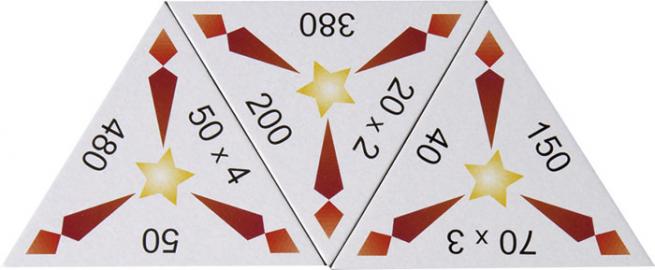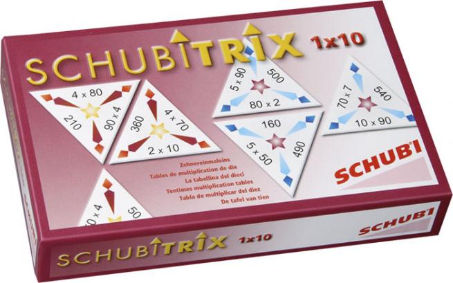Schubitrix wird nach Dominoregeln gespielt. Jeweils 24 bunt gestaltete dreieckige Spielkarten werden so aneinander gelegt, dass Rechnungen und Ergebnisse an den Seiten zusammen passen. Mit Selbstkontrolle. In jeder Schachtel findet sich ein leichtes und ein anspruchvolles Spiel zum Thema. 2 x 24 Teile, mit Anleitung, im Karton.
