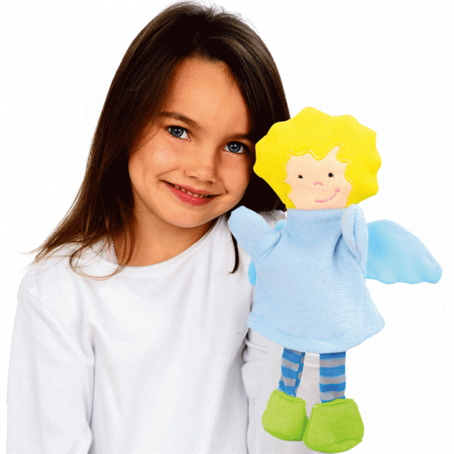 Ein schönes Geschenk, nicht nur zur Weihnachtszeit, z. B. auch wunderbar geeignet als Schutzengel für den Kindergarten- oder Schulstart. Der weiche Frottee-Waschhandschuh eignet sich ebenso als Handpuppe für wunderschöne Rollenspiele.
