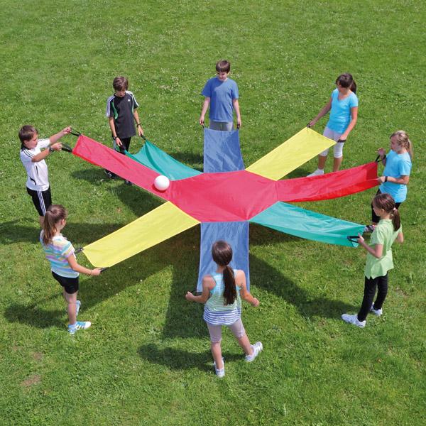 Auf 8 Bahnen, die sternförmig von der Mittelfläche ausgehen, wird ein leichter Ball in Bewegung gehalten. Der Ball kann über die Bahnen gerollt oder auf dem Tuch hin und her geworfen werden. Die gelungene Abstimmung zwischen den Spielern steigert den Spaß und das Gruppenerlebnis!