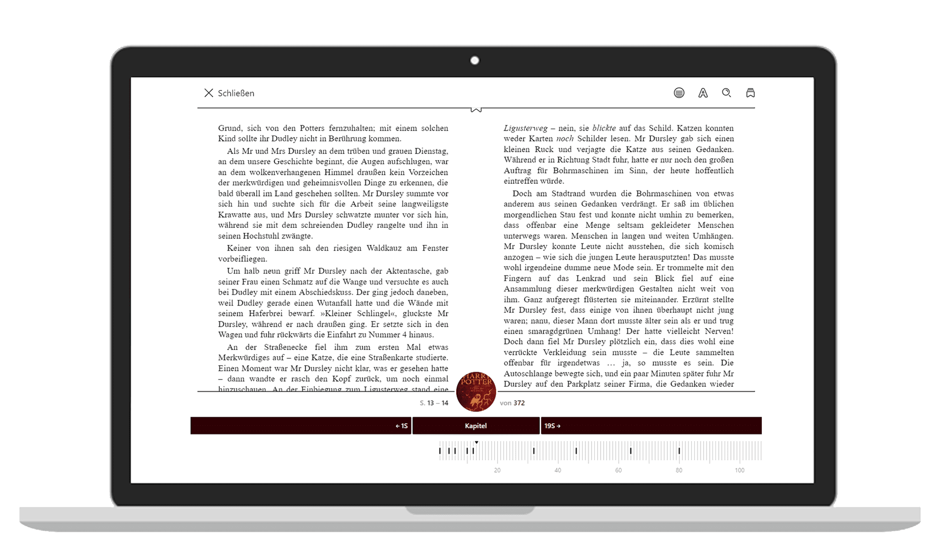 - Vor- und Zurückspringen: Auf dem Buchumschlag swipen oder durch die Suchleiste zu einer bestimmten Stelle springen