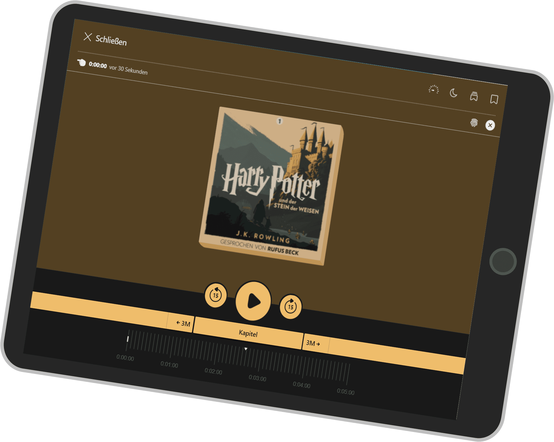 - Sleep Timer: Auf bestimmte Zeiten oder auf das Ende eines Kapitels einstellen