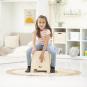 Optimales Einsteiger-Instrument mit starkem Klang. Kinder ab 3 Jahren setzen sich einfach auf den Trommelhocker und entdecken das Perkussionsinstrument, indem sie es mit ihren flachen Händen schlagen. So erzeugen sie z. B. tiefe Bässe und dank des fest eingebauten Snareteppichs auch den typischen Schnarr-Effekt. Inklusive Handaufkleber zum Markieren von Tönen, Bass und Snare sowie Trommelheft mit Rhythmusübungen und Kinderliedern zum Nachspielen.