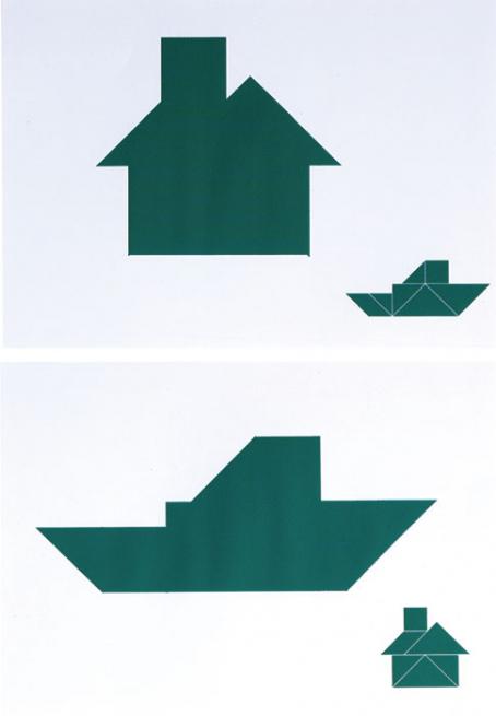 Mit den 24 doppelseitig bedruckten Tangram-Vorlagen legen die Schüler eigenständig geometrische Grundformen und Figuren.