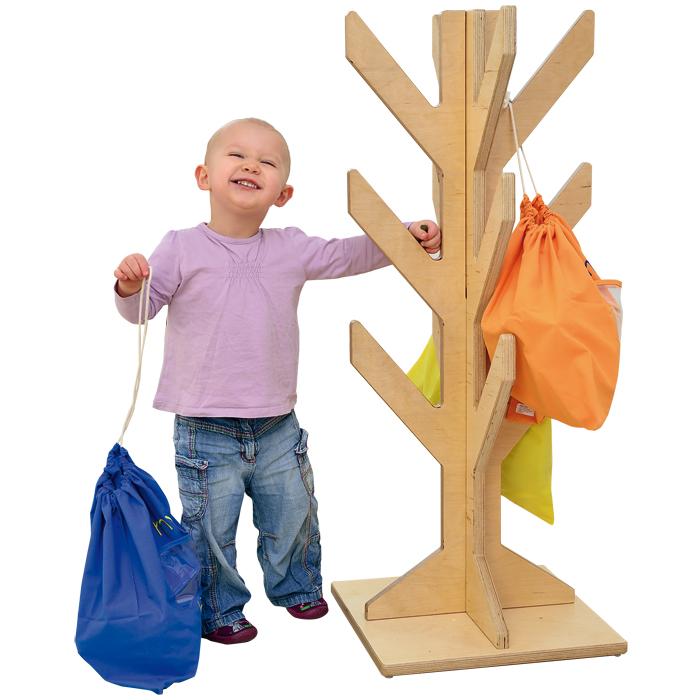 Der Taschenständer in Baum-Optik bietet 12 Äste zum Aufhängen von Taschen und Rucksäcken. Dank der Kinderhöhe von 100 cm können die Kinder dies ganz selbständig erledigen. Das schmale Design ist zudem noch platzsparend. Der Taschenständer wird zerlegt geliefert und ist einfach zu montieren.