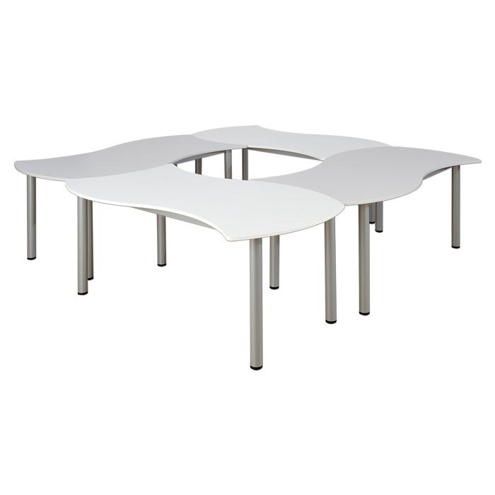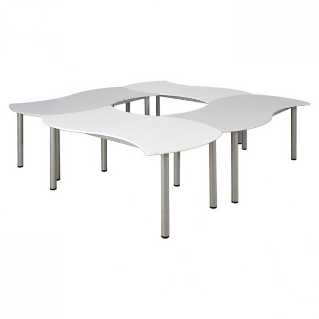 Das Set besteht aus 4 Wellen-Rechteck-Tischen.